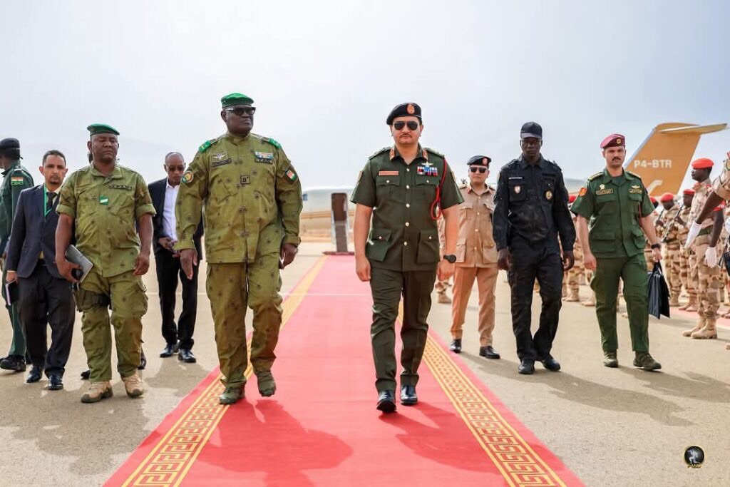 Le 21 mai 2025, le président du Niger, Abdourahamane Tchiani, a reçu en audience le général Saddam Haftar, fils de Khalifa Haftar, commandant de l’Armée nationale libyenne (ANL). Cette visite s’inscrit dans le cadre d’une coopération militaire et stratégique renforcée entre la Cyrénaïque et la junte au pouvoir à Niamey.